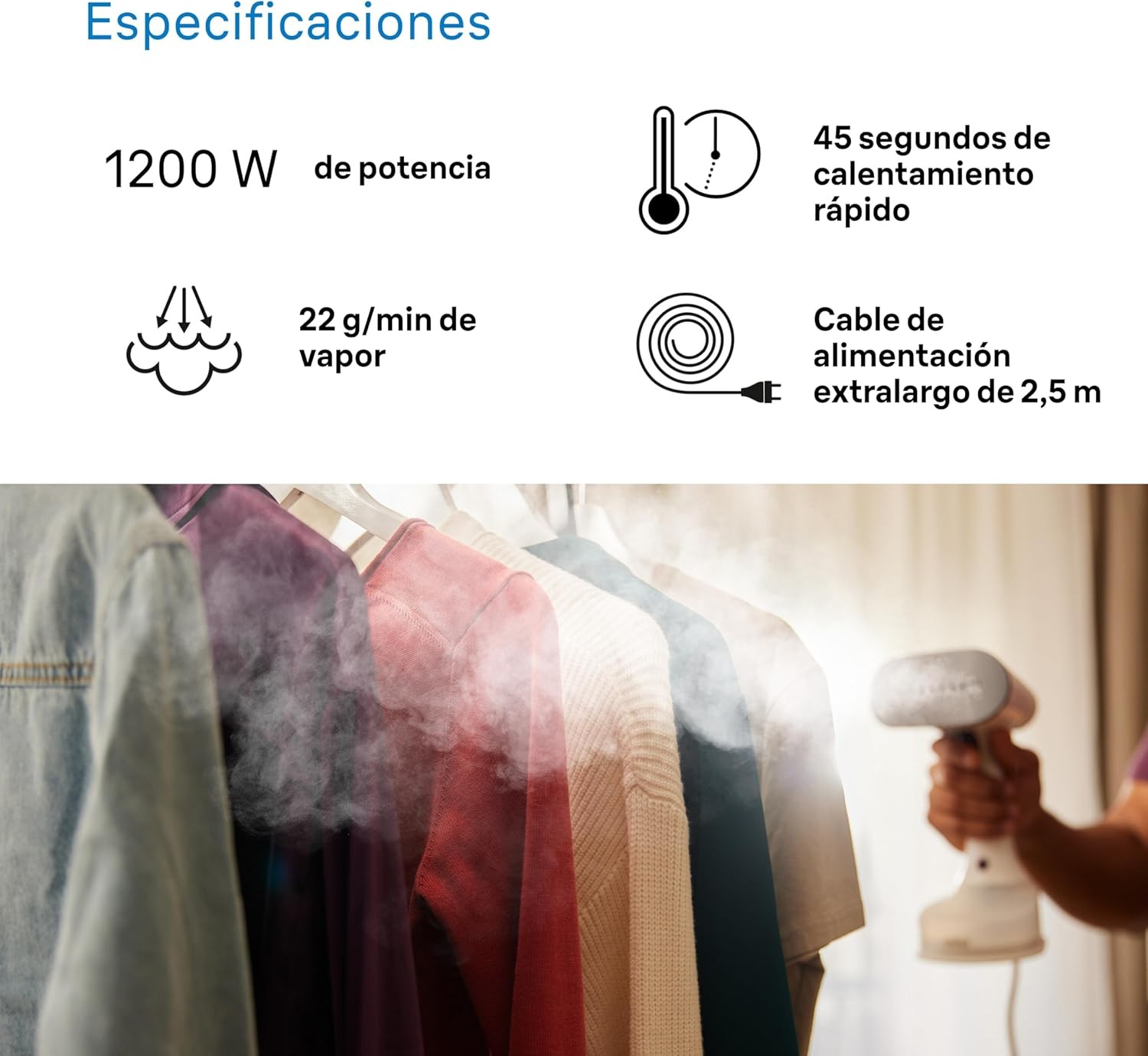 - Plancha de vapor vertical compacta y ligera