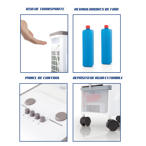 Además, las aletas direccionales oscilantes y las 3 velocidades de ventilación permiten un excelente caudal de aire, así como la regulación e intensidad del mismo. Por otra parte, Orbegozo piensa en ofrecer productos prácticos incorporando al climatizador evaporativo unas ruedas para facilitar el traslado del aparato a cualquier estancia.